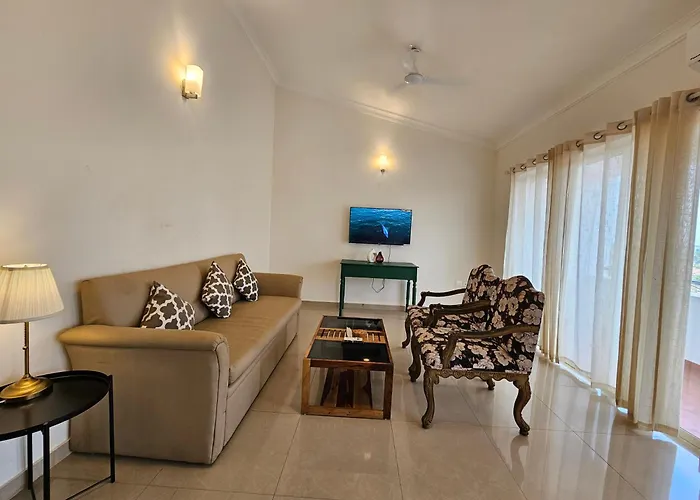 El Serene 2Bhk Porvorim Apartment With Forest View & Pool Access está situado a poco más de 10 minutos en coche del Casino Deltin Royale, y a unos 2 km de la Iglesia de Nuestra Señora de la Inmaculada Concepción. Este apartamento de 100 m² ofrece instalaciones modernas, como Wi-Fi y servicios esenciales como un aparcamiento privado gratuito para los que viajan en coche.
